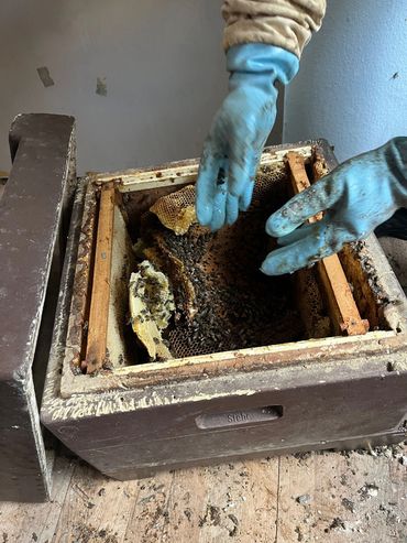 Hier wird ein Bienennest ( Honigbiene) sorgfälltig umgesiedelt